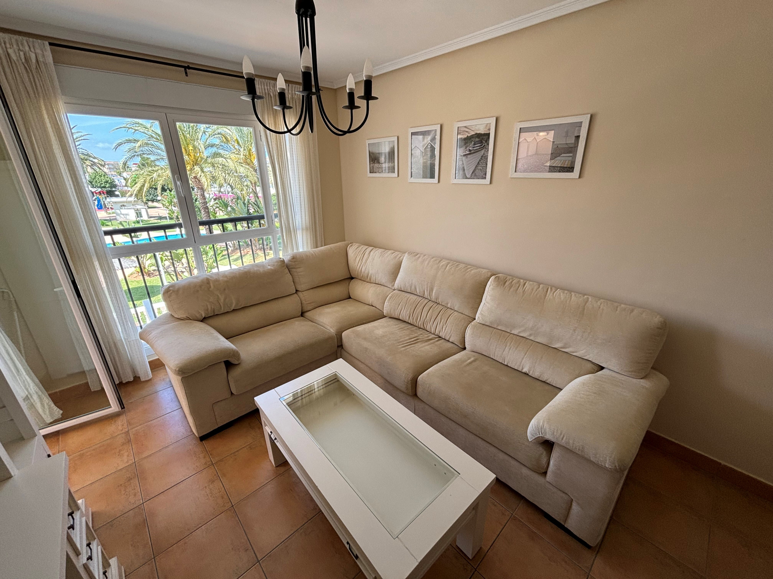 Dispone de ascensor, jardín, lavadora, plancha, aire acondicionado en todo el alojamiento, piscina comunitaria+infantil, garaje en mismo edificio, Televisión.